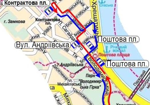 Для покращення обслуговування пасажирів з 3 вересня на вихідні дні впроваджується додаткова зупинка для автобусів маршруту № 62 – «Вул. Андріївська» на вул. Петра Сагайдачного в напрямку Контрактової площі.