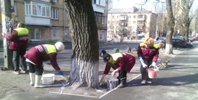 Комунальні служби Печерського району розпочали весняну побілку дерев