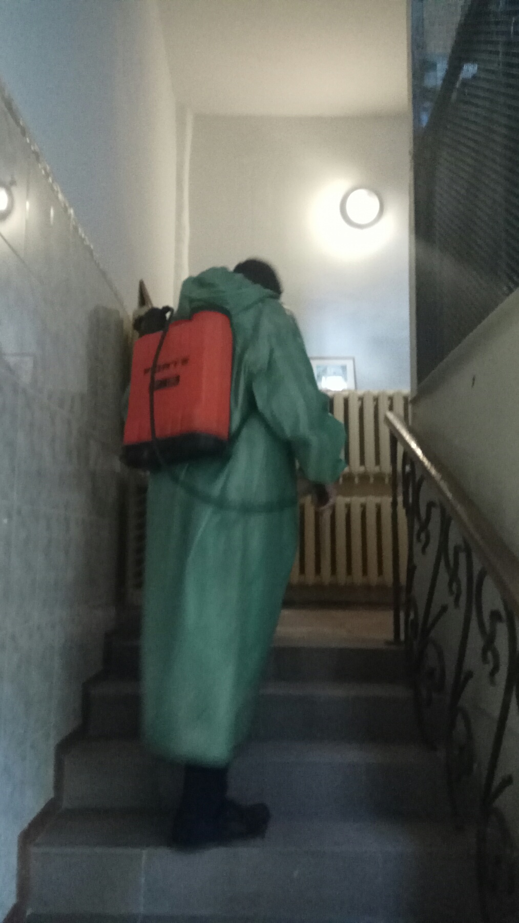Так, працівники служб для дезінфекції використовують таблетки САНІТАБ та гипохлорид, якими проводять протирання поверхонь перил, ліфтових кабін, кнопок виклику ліфта на кожному поверсі, кнопок у кабіні ліфта, дверних ручок на вході до під'їзді, почтових скриньок, домофонів та предметів загального користування.