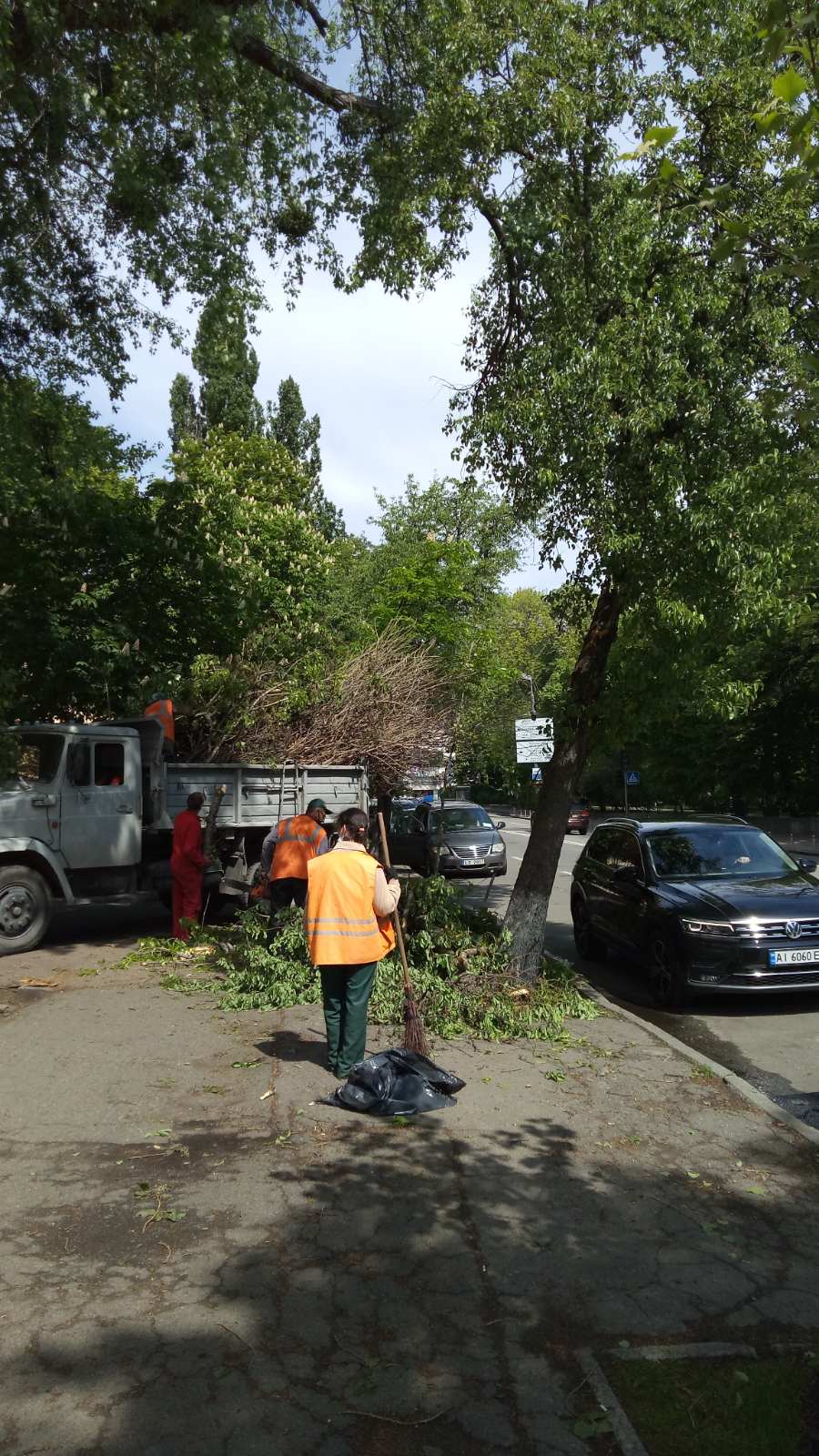 Так, сьогодні, 15 травня, виконані роботи з санітарної обрізки дерев та видалення омел на балансових територіях.