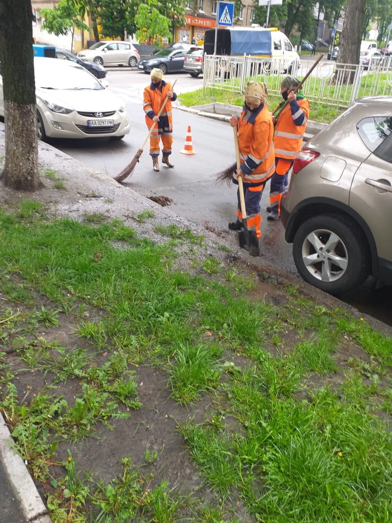 Не зважаючи на мінливі погодні умови, працівниками служби утримання автошляхів та споруд на них КП "ШЕУ Печерського району" в режимі 24/7 активно продовжується робота з ручного прибирання балансової території вулично-дорожньої мережі району.