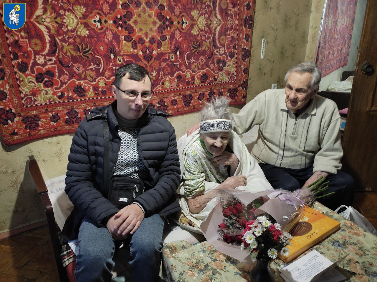 Від імені голови Печерської райдержадміністрації Наталії Кондрашової з нагоди дня народження до довгожительки з квітами та подарунками завітали представники управління соціального захисту населення Печерської РДА.