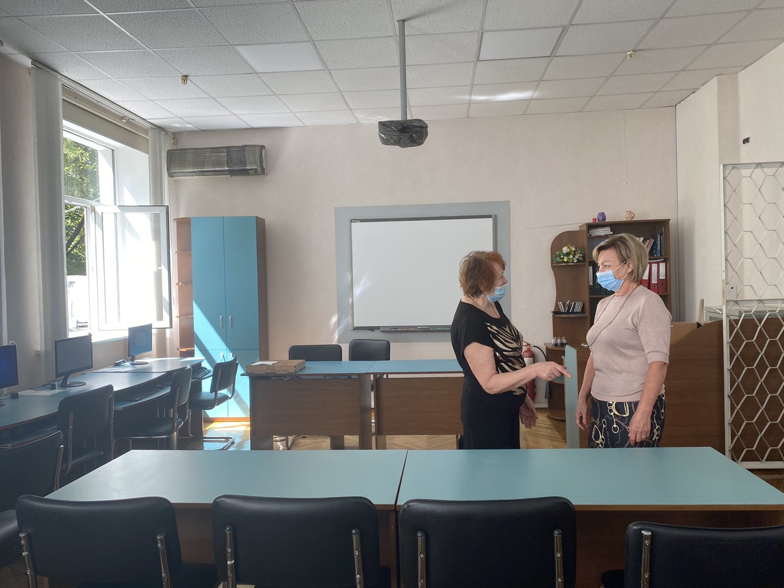З метою здійснення моніторингу з підготовки закладів загальної середньої освіти до нового 2020/2021 навчального року голова Печерської райдержадміністрації Наталія Кондрашова проінспектувала Український гуманітарний ліцей КНУ ім. Т. Шевченка.