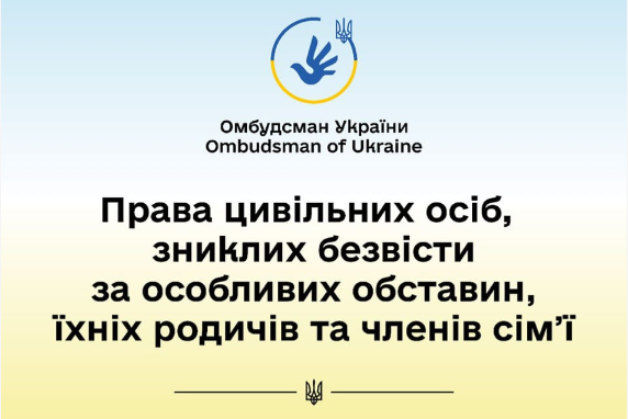 Уповноважений Верховної Ради України з прав людини Дмитро Лубінець нагадує, що особа, зникла безвісти за особливих обставин, має всі права, гарантовані Конституцією та законами України, а також має право на всебічне розслідування обставин її зникнення та встановлення її місцеперебування.