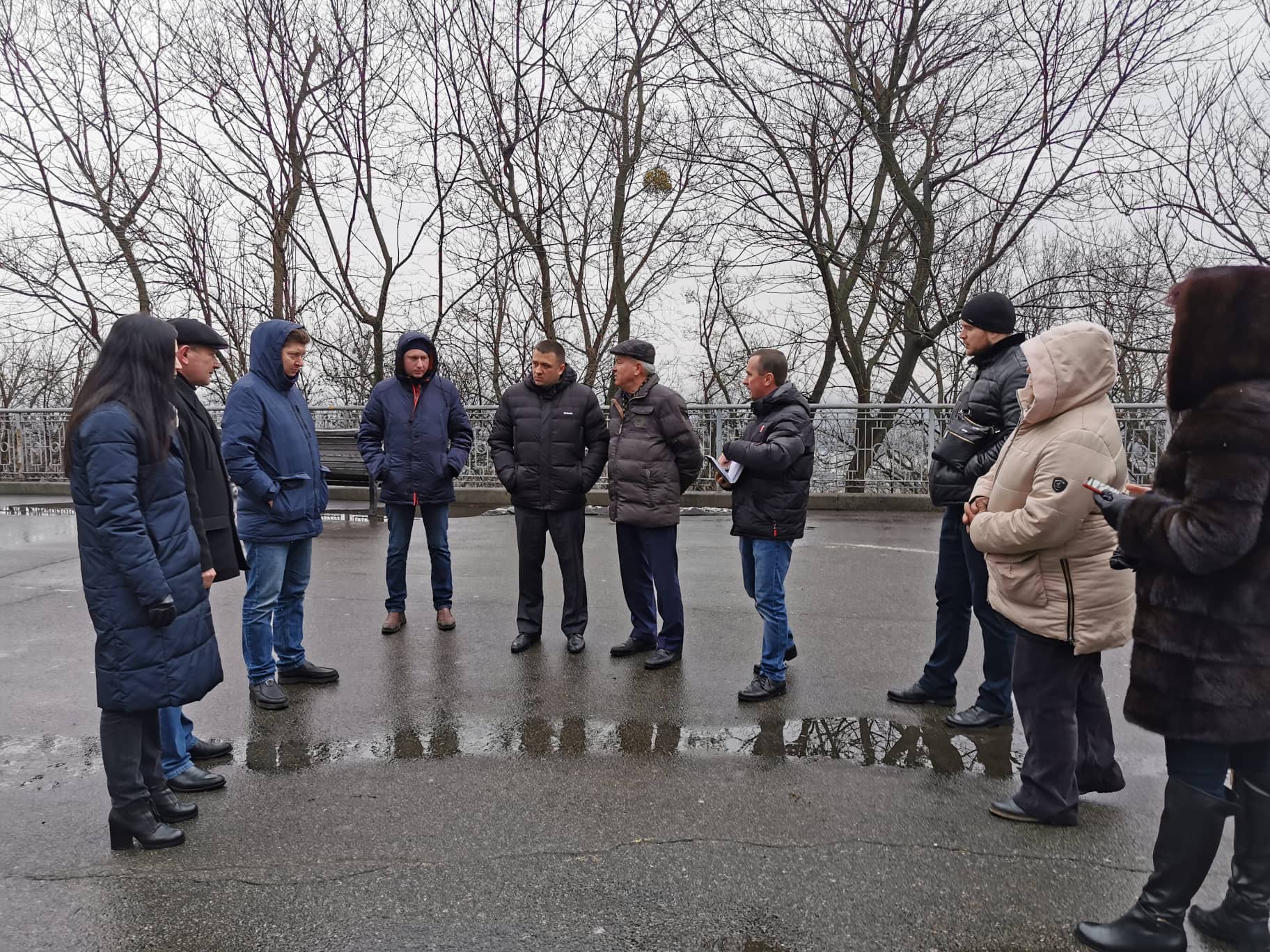 Під час наради обговорено стан асфальтового покриття на ділянці від сцени «Мушля» парку «Міський сад» до оглядового майданчика у Маріїнському парку.