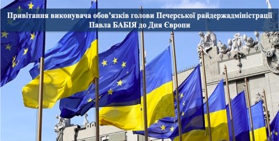 Привітання виконувача обов’язків голови Печерської райдержадміністрації Павла Бабія до Дня Європи