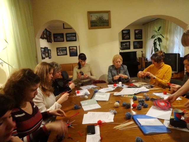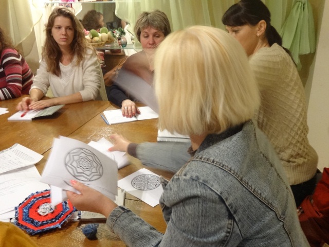 У другій частині заняття учасники заходу навчилися техніці плетіння мандал, яка використовується для зниження стресу у психотерапії. Для виконання завдання психологи та соціальні педагоги отримали нитки з натуральних волокон (шерсті, бавовни та ін. матеріалів) та палички. В ході заняття учасники навчилися основним технологіям плетіння та чотирьом видам візерунку.