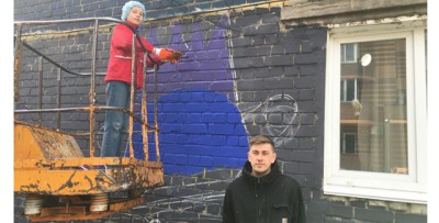 Вже четвертий день у Печерському районі міста Києва на одному з будинків по вулиці Анрі Барбюса, 11/2 талановитий український художник Артем Прут та 12-річний печерянин Олексій працюють над створенням настінного полотна - муралу. Фотозвіт.