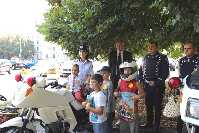 Особливе захоплення викликала сучасна патрульна техніка. Всі бажаючі могли посидіти за кермом міліцейської машини та мотоцикла, а також сфотографуватися на згадку. В цей радісний день не обійшлося і без подарунків. Від ДАІ діти отримали тематичні закладинки та зошити «Молоде покоління – за безпечний рух». А від організації «АВТОСОЮЗ», які також разом з інспекторами прийшли підтримати благодійну акцію, малеча отримала яскраві тематичні розклади уроків.