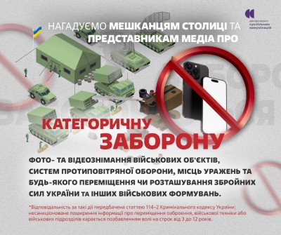 Забороняється фото- та відеозйомка, а також поширення будь-яких матеріалів, що стосуються: