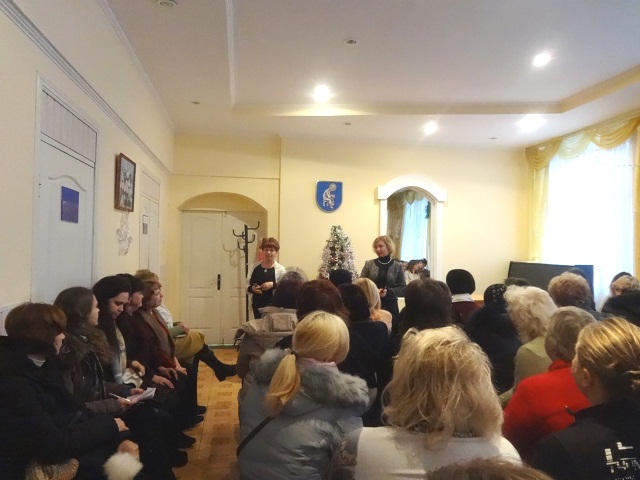 Начальник управління праці та соціального захисту населення Ольга Мозгова та директор Територіального центру Валентина Некрутова привітали працівників Територіального центру, зокрема соціальних робітників з наступаючим Новим роком, подякували за плідну роботу та побажали наснаги в роботі, благополуччя та щастя.