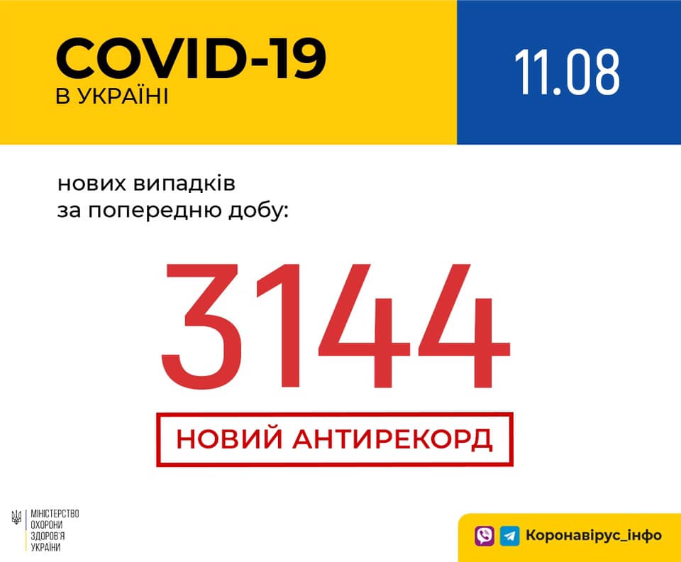 В Україні зафіксовано 3 144 нові випадки коронавірусної хвороби COVID-19 – це антирекорд кількості нових хворих за добу.