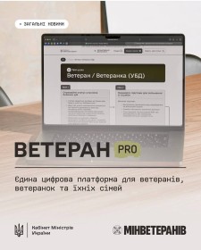 Уряд України на виконання доручення Президента України представив Ветеран PRO — державну цифрову платформу для ветеранів, ветеранок і їхніх родин, де зібрано всю інформацію про пільги, програми, послуги та можливості в одному місці. Проєкт реалізовано Міністерством у справах ветеранів України.
