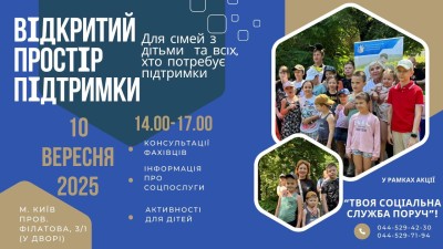 Запрошуємо на подію «Відкритий простір підтримки» — зустріч, створену для родин, які опинилися у складних життєвих обставинах, а також усіх, хто потребує соціальної, емоційної чи інформаційної підтримки, хоче дізнатися більше про доступні соціальні сервіси